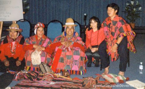 From left to right: Dona Bernadina Apassa, Don Humberto Soncco Quispe, High Priest of the Q’eros at that time, mentoring Don Francisco, presently in that position, Susana Sorí, and Don Porfirio Sequeiros, the Q’ero’s Quechua-to-Spanish translator.